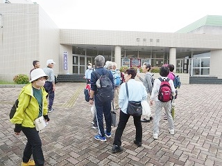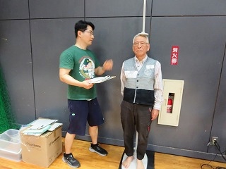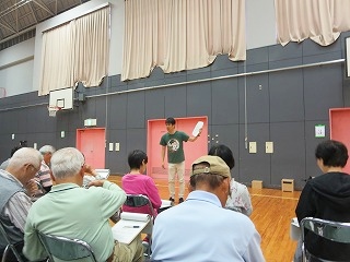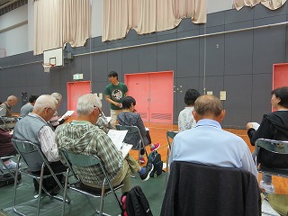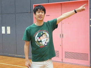 企画担当(N)氏 挨拶 西体育館前で集合写真