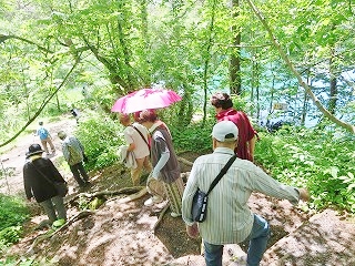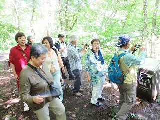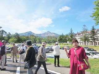 | ホテルで記念撮影 | 探勝路入口から五色沼自然探勝路トレッキングへ | ||