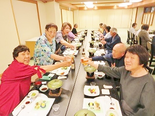| 宴会会場 食事前に集合写真 | リーダー挨拶 | 宴会幹事挨拶 | |