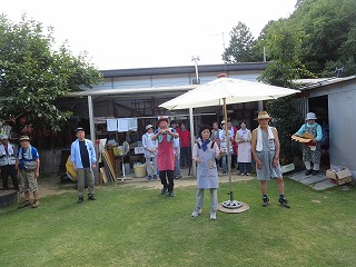 | 料理長指示の指示を聴く | 梅田工房で記念撮影 | ウォーキンググループ集合 |