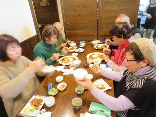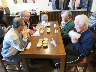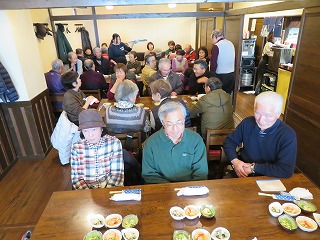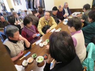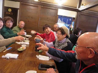 | 2階昼食会場・お茶でカンパイ~ | ||