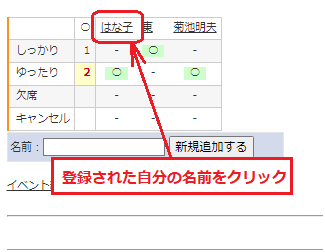 】登録された名前をクリック
