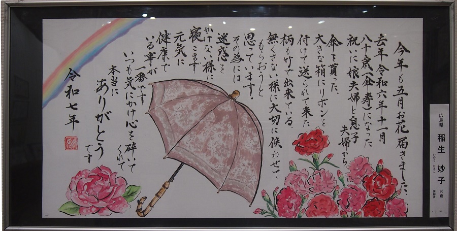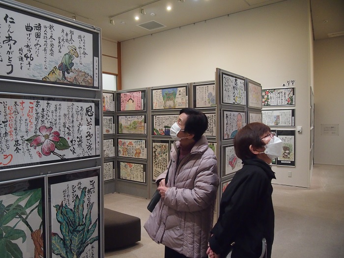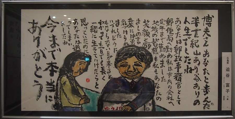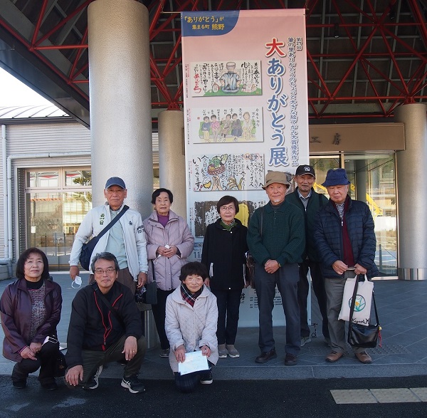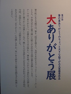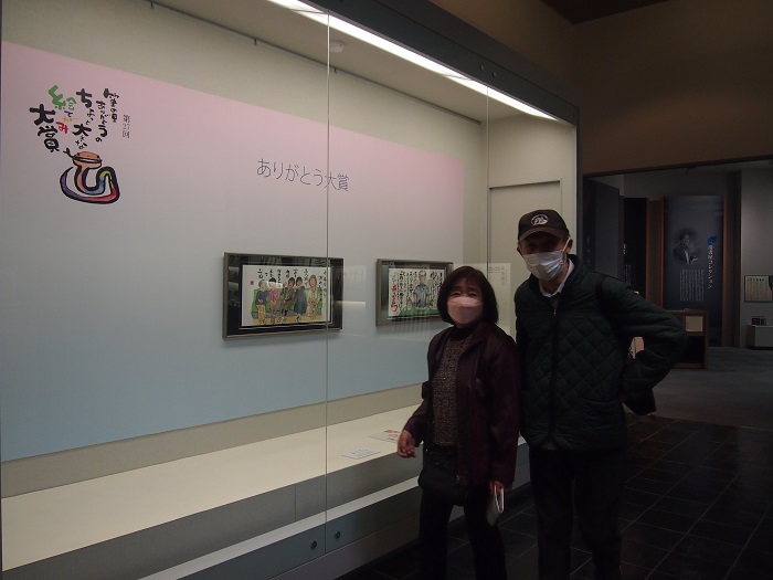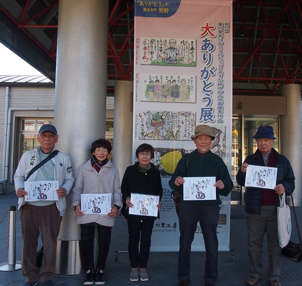 | 今年で27回を迎えた「筆の里ちょっと大きな絵手紙ありがとう展」が熊野町の 工房で11月15日〜12月25日迄、開催されありがとうの気持ちを筆に が日本全国から7,611点が応募され、賞を取った優秀作品が展示されて 12月の例会で見学をいたしました。 今年も絵手紙同好会より応募し、見事5作品が奨励賞の栄誉に輝きました。