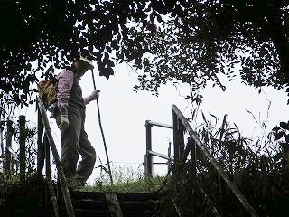 | 階段を上がり | 板橋を渡り | ||