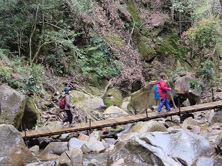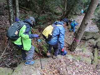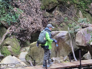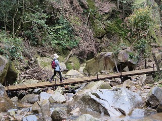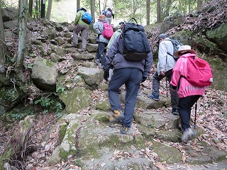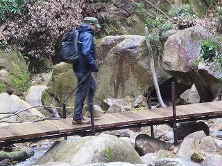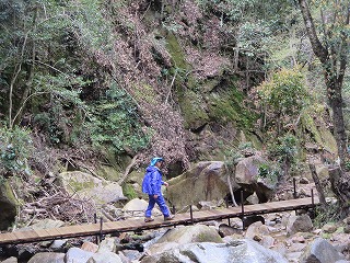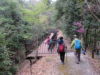 | 【例会報告】第114回棲真寺登山 記:小森山光朗 【開催場所】 棲真寺(三原市) 【実施日】 令和7年4月14日(月) 天候 曇りのち雨 【参加者】 18名 (男 11名 女 7名) 【所 感】 天気は曇り、今にも降り出しそうな天気。そのような状況のなかで、参加者は集い、各車に乗り出発。 まず、昼食を購入のためにコンビニに立ち寄る。まだ入荷前の為に品数は多くなかったが、目当ての弁当を購入。 10時前に瀑雪の滝駐車場に到着。 各自登山準備を行い、準備体操をし、いざ、出発。 線路の下のトンネル(立派な)をくぐり、瀑雪の滝の標柱を見ながら進と、滝が見え、最近の雨の後で有り、落ちる量は申し分なかった。 ここで、記念撮影、あすこがいい、ここがいいと色々思案し無事に撮影がすみました。 ここからが本格的に山を登ります。 色々な名所が有り、どのことを言っているか想像しながら探す楽しみが有り勉強になりました。 岩を登り、ロープでひやひや川を渡り、途中でお地蔵さんに手を合わせる人もいた。 休憩を取りながらの山登りですが、差し入れもありありがたいです。 棲真寺に到着後、お花見広場に向かいましたが、残念ながら、桜の花が散っていた。 気を落ち着かせながら、広島空港大橋の見える展望台に向かう。 ここから雄大な橋をバックに記念撮影。 お寺の境内に入ると、つつじや、しだれ桜、桜の花がまだ咲いていてきれいだった。 昔、藁屋根のお寺跡で、昼食。美味しくいただいていると雨がぽつり。 急いで、雨対策で、傘や、カッパを準備。 雨が降りだしたが、花がきれいなために記念撮影をし、下山を開始。 木の下を降りるために雨はあまり気にならず、スムーズに下山。 ロープで渡る川には、最新の注意をして、慎重にわたった。 下山後、帰る準備をして、車を出すと本格的な雨になった。帰りに、スーパーで缶コーヒーで冷えた体を温めた。リーダーに感謝。 今回の登山は、あまり高い山ではなかったが、岩や葉っぱ、川渡りと危険なところが満載のスリルある登山となった。 皆さん満足したのではないだろうか。 次回も大勢の参加をお待ちしております。本日は、ご苦労様でした。 以上 |
