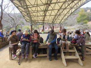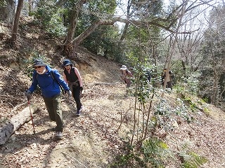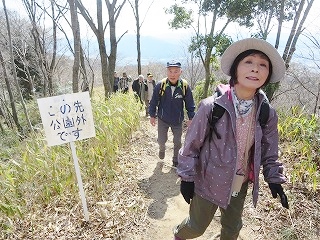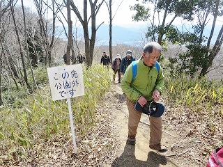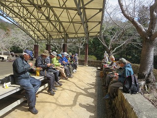 | 【第123回例会報告】 「竜王山(総会登山)」 記:渡邊 大輔 【実施日】 令和7年3月16日(月) 天候 晴れ ●令和7年度総会及び龍王山(574.6m)登山 【開催場所】 龍王山(574.6m)(東広島市西条町) 【参加者】 20名 (男 13名 女 7名) 【所 感】 憩いの森セミナーハウス前に10時に集合、小森山さんの指導で準備体操を行い早速登山スタート(10:05)。 いつも登っている山ですが、本日はパンフレットに載っていない違ったコースを登ってみた。紅葉谷コースの少し東の山道を登っていく。 私はよくこのコースを利用する。皆元気に足取りも軽やかだ。20分過ぎに舗装された道を少し歩いたところで休憩、 そこには白色のミツマタの花が咲いていました。花を愛でさらに登って行きます。山道に入り足を踏ん張りさらに20分ほど歩くと 「休みましょう」との声で小休止。また歩き始め5分ほど歩くと車道に到着。すぐに山道へ入ると龍王山山頂へ到着(10:50)です。 山頂で集合写真を撮り下山します。下山(11:00)は山頂の下の広場から山道へ入り下りる予定でしたが、 車道を歩くことにしました。車道はアスファルトで歩きにくいです。でも下りなので歩く速度も少し早くなり第二展望台を11時半 に通過。15分ほど歩くとグランドへ到着しました。 山へ登らなかった新川リーダーと山口さん、藤井文子さんも見えグランドで昼食を摂りました。 その後セミナーハウスへ移動し令和7年度の総会を開始しました。来年度は山口さんと藤井文子さんが退会されます。寂しくなりますが仕方ないですね。 以上 |