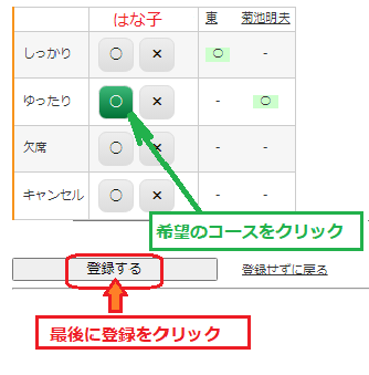 【2】 次に希望のコースを選択する