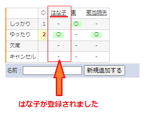 】登録された名前をクリック