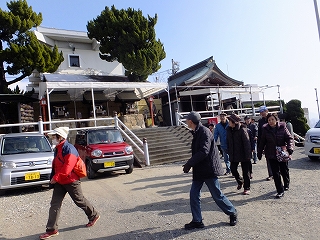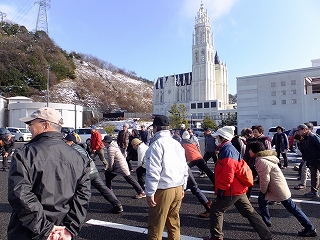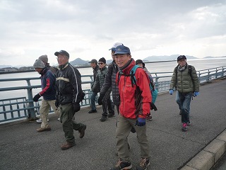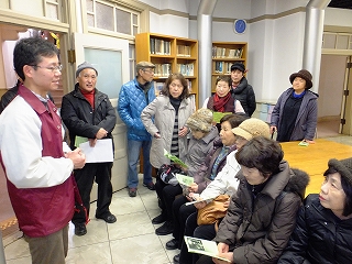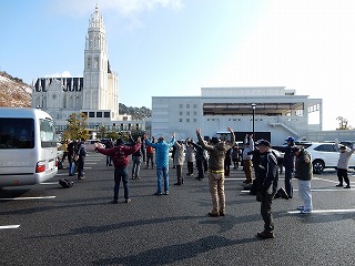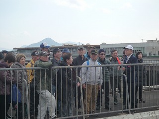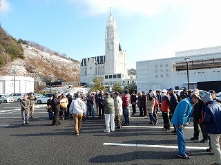 | 市場見学を終え、ゆったり組はバスで江波山気象館へ | しっかり組・33名 江波山気象館へウォーク | |