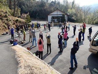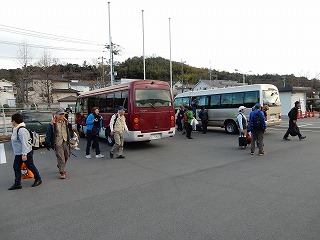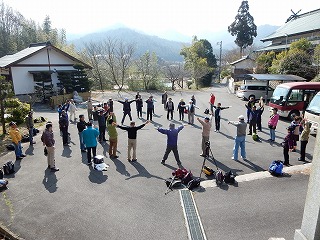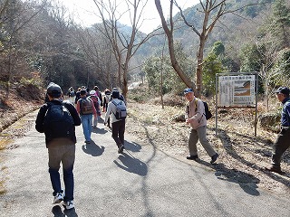 | 白滝山へウォーキングスタート (ゆったり組は、バスで白滝山駐車場へ) | ||