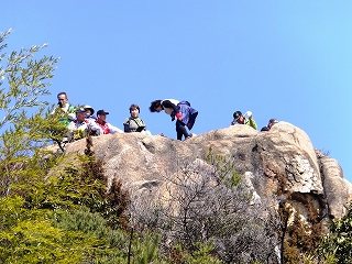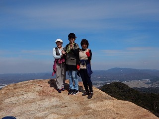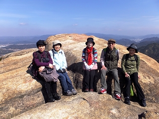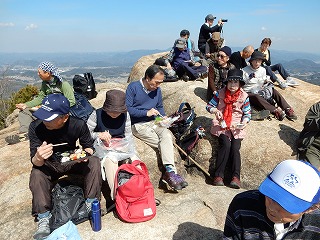 | 山頂の八畳岩にて、絶景を見ながら昼食 | ||