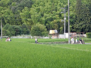 | のどかな田園風景を眺めながら | 高屋堀団地入口 | 料理準備班のお出迎え |