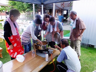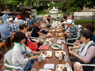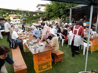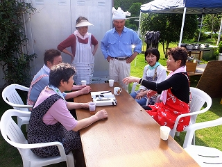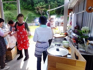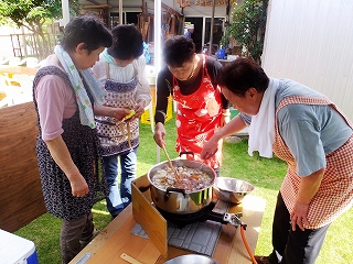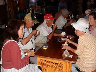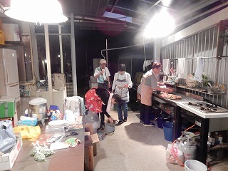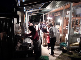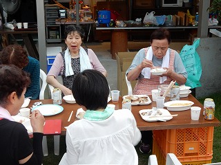 | 後片付けをする料理班の皆さん | 歓談中 | |
