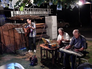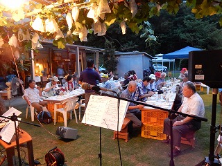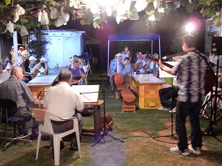 | 暫し、楽団演奏を聞き入る皆さん | ||