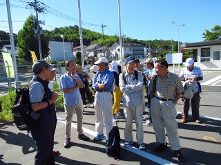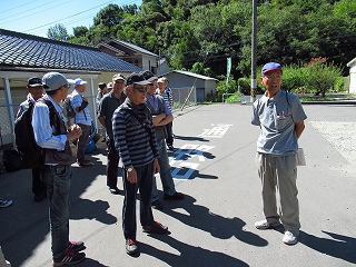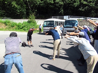 | 大頭神社駐車場で企画担当(N)氏 企画説明 | ストレッチ | |