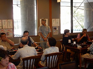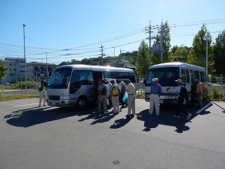 | バスに乗車 帰路へ | 帰路 企画担当(N)氏挨拶 | 次回の企画案内をする(U)氏 |