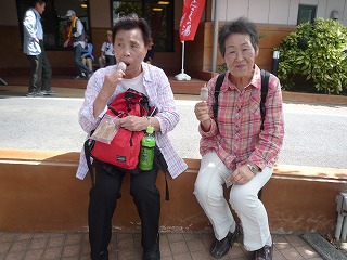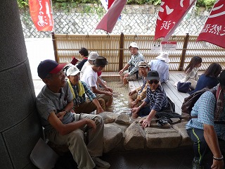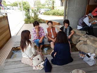 | アイスクリームを食べるみなさん | 足湯でウォーキングの疲れを癒す | |
