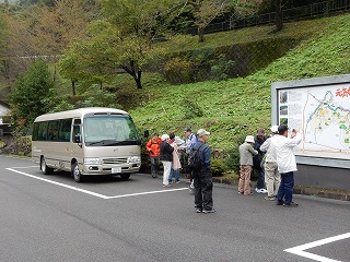 | 弁当購入しバスに戻る | 常清滝駐車場に到着 | |