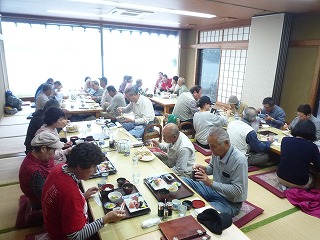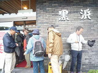 | 各自で会計 | 午後のウォーキング雨の為中止、一路帰路へ | 旧シャープ3工場前で4名下車 |