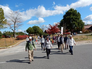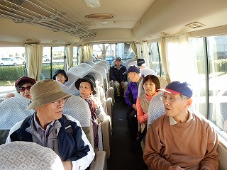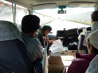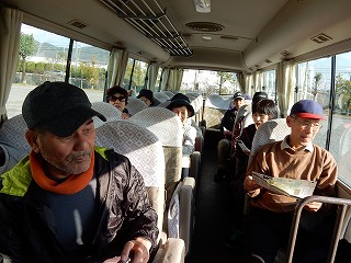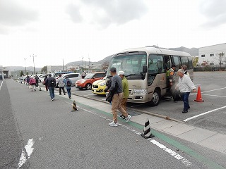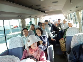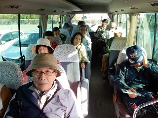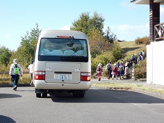 | 飛行機の見える丘よりピクニック広場に向かう、ゆったり組は、バスで移動 | ||