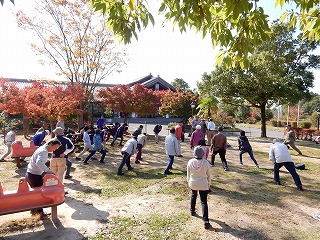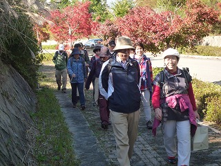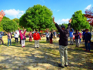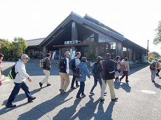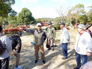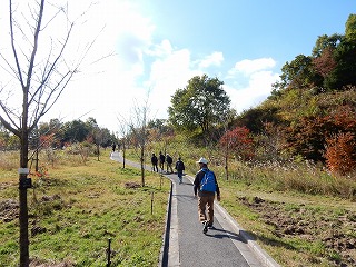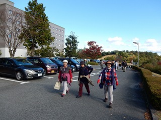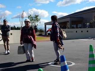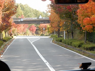 | 2号車 F氏 コース説明 | 街路樹の紅葉まっさかり | 公園センターに到着 |