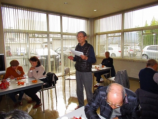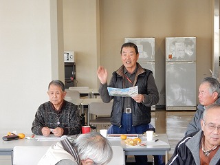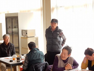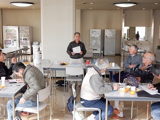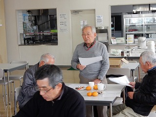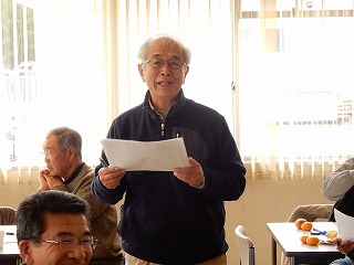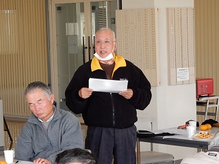 | リーダー挨拶 ・ 本年の反省と来年のキーワード説明 | 説明を聞く皆さん | |