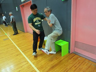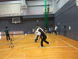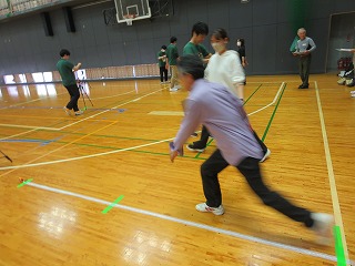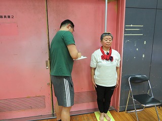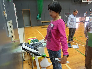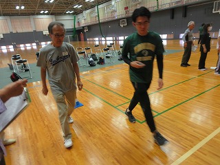 | バランス移動能力体力測定中 | ||