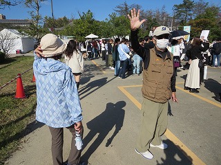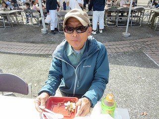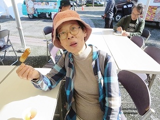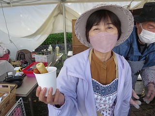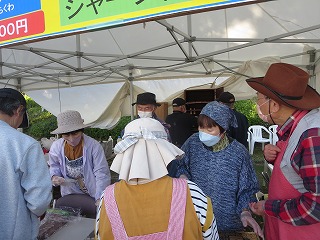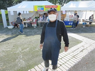 | 福祉祭り会場 燻製売り場の売り子さん | |||