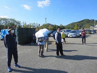| しっかり組 広島大学西第2駐車場 集合 | リーダー挨拶 | ||