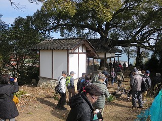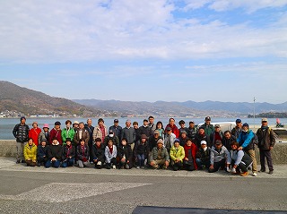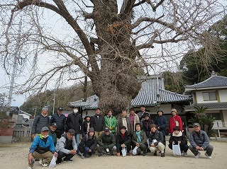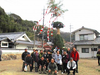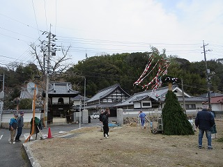 | 蓮光寺で集合写真 | 安芸津とんど櫓 | ||