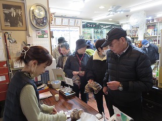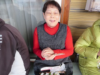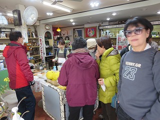 | 昼 食 | 大芝朝市前で集合写真 | ||
