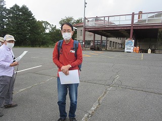| 事業本部「M駐車場テニスコート側」集合 | 企画担当(K)氏挨拶 | |