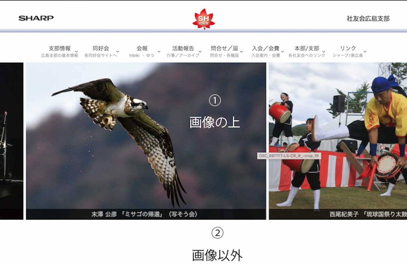ホームページガイドホームページトップスライドショーの新操作方法ホームページガイド2024.12.082025.02.14トップ画面のスライドショーは2回/月更新しています。(写そうかいの作品です)再生方法が変更になりましたので、お知らせします。ホームページを開くとスライドショーが自動的に流れて再生されます。①見たい画像のところにマウスオーバー(スマホの場合は指でタッチ)すると画像が止まります。②再び再生したい場合は画像以外のところをマウスオーバーすると再びスライドショーに戻ります。どうぞ、スライドショーをお楽しみください。次回の画像更新予定は12月16日以降です。