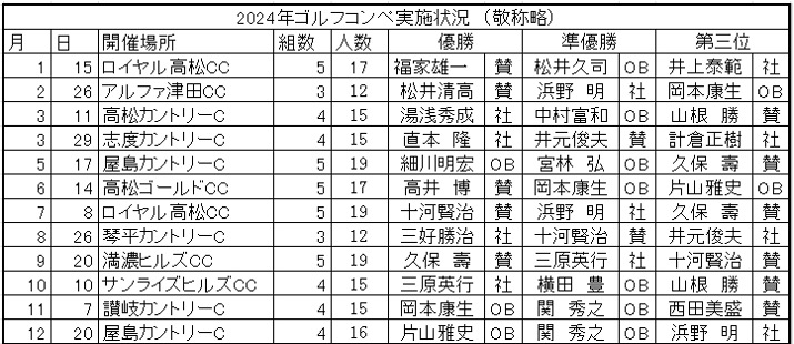 ゴルフ親睦同好会・忘年会開催報告です。(四国の尾崎さんからの報告です)