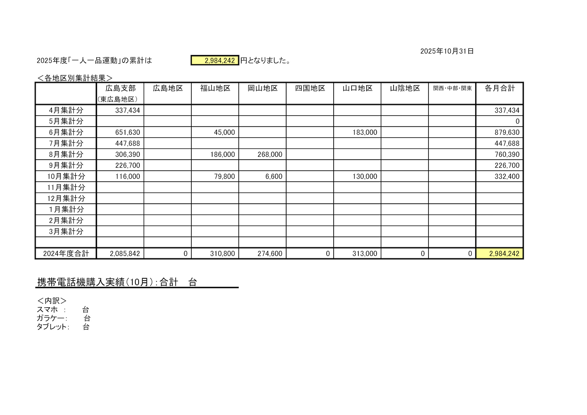 シャープ商品購入実績会員情報会員慶祝10月度会員情報&シャープ商品購入実績シャープ商品購入実績2025.11.013件の報告① 慶祝 1人② 新入会員 2人③ シャープ商品購入実績報告① 慶祝(喜寿)お1人 おめでとうございます。 上山 哲一郎 さん② 新入会員(正会員) 山本 信介 さん 広島支部 喜田 栄禧 さん 広島支部 再入会③ シャープ商品購入実績報告