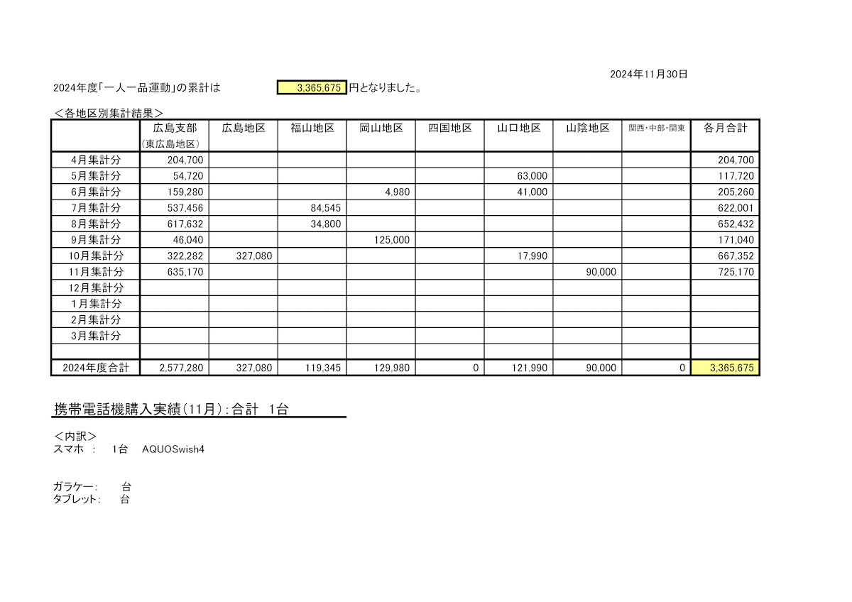 会員情報2024年 11月度会員情報2024.12.042025.02.14会員情報&シャープ商品購入実績2件の報告① 慶祝(喜寿)1人② シャープ商品購入実績報告① 喜寿を迎えられました。おめでとうございます。・ 河野 俊治 さん② シャープ商品購入実績報告-11月度