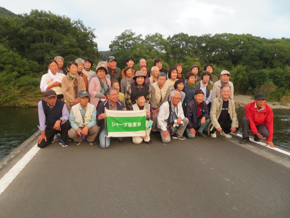1日目は八本松の社友会駐車場に集合し8:20に出発。山陽自動車道を通り、早島ICから瀬戸内自動車道に入り四国を南下する形で桂浜まで行きそこで食事をしました。その後 四万十川の佐田沈下橋に立ち寄り記念写真を撮り、足摺岬近くの温泉ホテルに宿泊しました。
