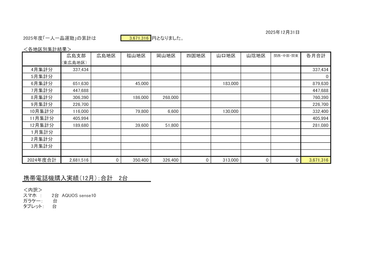 リリース12月度会員情報&シャープ商品購入実績リリース2025.12.313件の報告① 慶祝 1人② 新入会員 2人③ シャープ商品購入実績報告① 慶祝 (古希)おめでとうございます。 大畠 昌巳 さん② 新入会員 (正会員) 2人 鬼追 一雅 (キオイ カズマサ)さん 石井 清真 (イシイ キヨマ)さん③ シャープ商品購入実績報告-12月度
