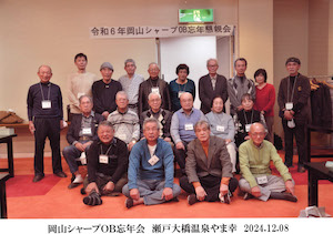 OB会令和6年岡山シャープOB忘年懇親会 昨年12月8日(日)瀬戸大橋温泉やま幸にて岡山シャープOB忘年会を開催しました。参加メンバーは県外から7名、併せて合計20名になりました。 岡山地区委員長 池田 征三郎」2025.01.222025.02.14OB会