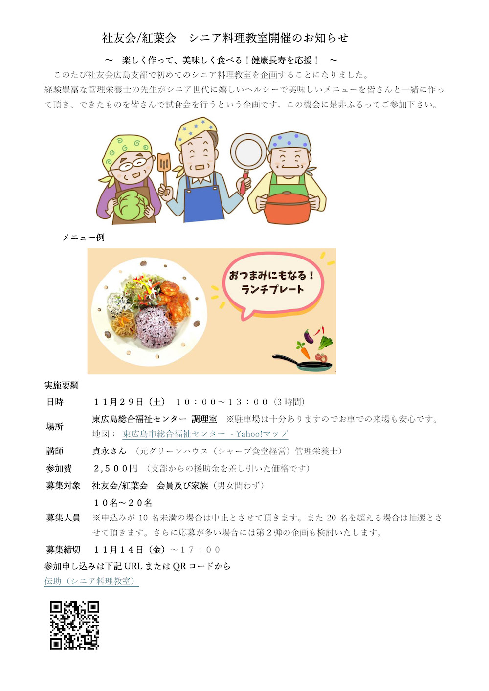 社友会/紅葉会 シニア料理教室開催のお知らせ