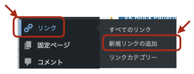ダッシュボードから「リンク」 → 「新規リンクの追加」を選択