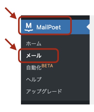 ダッシュボードから「MailPoet」→「メール」をクリックする。