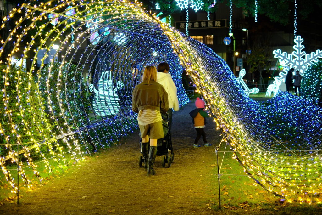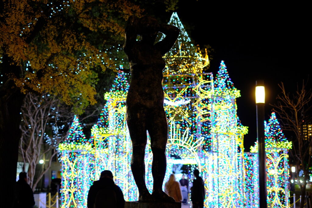 食後は平和大通近辺でイルミネーションを写しましたが 子供連れとか 外国人観光客も多くにぎわっていました。